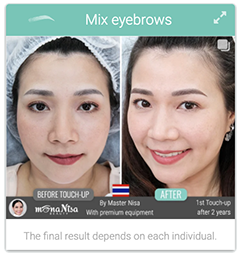 ![สักคิ้วลายเส้น ด้วยเครื่องมือพรีเมี่ยมบน คิ้วที่เคยสักมาแล้ว โดยอาจารย์นิซ่า]()