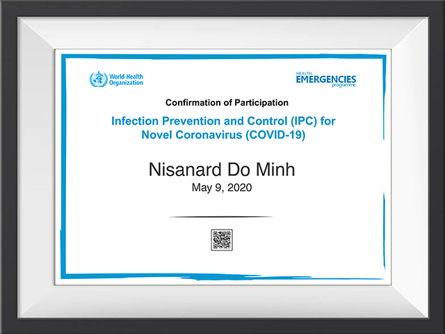 ใบประกาศการป้องกันการติดต่อเชื้อโรคในการทำงาน